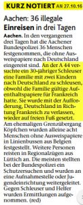 Heute ist in den Aachener Nachrichten unter „Kurz notiert“ zu lesen, dass es in den vergangenen 3 Tagen 36 illegale Einreisen gab. Das ist so nicht richtig.