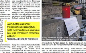 Wenn man gestern über den Weihnachtsmarkt in Aachen ging, sich die massiven Sicherheitsvorkehrungen anschaute, dann wusste man,