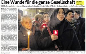 Am 21.12.2016 erschien in den Aachener Nachrichten im Zusammenhang mit der Trauerfeier in Berlin aus Anlass des Anschlages ein Bericht mit diesem Foto: