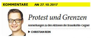„Sind die Demonstranten, die sich so verhalten haben, Kriminelle? Sind sie Gewalttäter? Sind sie Krawalltouristen? Sie haben im Rahmen ihres Protestes Gesetze gebrochen. Ihr Ziel war es, den Betrieb in den Tagebauen zumindest kurzzeitig lahmzulegen, um ein Zeichen zu setzen.“ Quelle: Hier klicken