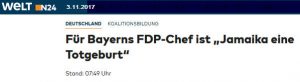 Nur weil Jamaika nach Meinung der etablierten Parteien die einzige Konstellation ist, welche in einem „demokratischen“ Land möglich sei.