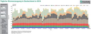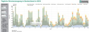 Das zeigt sehr schön die Gesamtherkunft des Stroms im Zeitraum. Am 6. und 7. März musste – wie bereits so oft in 2018 – massiv Steinkohle zusätzlich verbrannt werden.