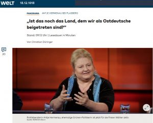 „Natürlich spielt Identität eine Rolle“, sagte Hermenau. „Wir haben uns aus der Umklammerung Moskaus gelöst und wollten Deutsche sein. Jetzt hat sich Deutschland so verändert, dass sich viele fragen, ist das noch das Land, dem wir beigetreten sind.“