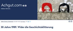 … zurückliegen, umso mehr scheinen linke Strömungen Oberwasser zu bekommen. Endlich – so offenbar ihre Hoffnung – könne man dem Volk, dem großen Lümmel, ihre Version der 89er Ereignisse wie Sand in die Augen streuen. Diesem Ansinnen aber gilt es, schon allein aus Gründen der Selbstachtung sich zu widersetzen. Auch die Deutschen haben ein Recht auf Wahrhaftigkeit, nicht nur wenn es um die Abgründe, sondern auch, wenn es um die Sternstunden ihrer Geschichte geht.