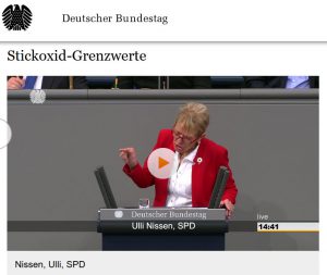 Es reicht für die anderen Fraktionen allemale, um sich durch ein wie auch immer gestaltetes Abwatschen dieser Kollegen hervor zu tun. In dieser Aktuellen Stunde ist es Ulli Nissen, die sich vor allen anderen unangemessen hervor tut. Am 31.1.2019 war es eine veritable parlamentarische Staatssekretärin des Bundesumweltministriums: Rita Schwarzelühr-Sutter. Hier klicken und Rede aufrufen.