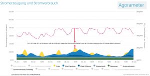 Nur die Stetigkeit konventioneller Stromüberproduktion als Reserve (Chart links: Die Stromerzeugung oberhalb der Verbrauchslinie) bei Erzeugungsabstürzen von Wind und Sonne in Deutschland hat einen Blackout bisher verhindert.