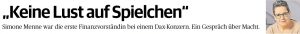 Heute macht Simone Menne das, wovon sie als junge Frau träumte: Kunst. In der Kieler Innenstadt hat die Finanzexpertin eine Galerie eröffnet. Während des Interviews hört man die Möwen und das Tuten der Kreuzfahrtschiffe. Zuvor hat sie eine harte Karriere als Managerin bei der Lufthansa gemacht, wo sie die erste Finanzvorständin in einem Dax-Unternehmen war. Dafür musste sie allerdings auch Niederlagen wegstecken, wie sie im Gespräch mit Kristina Dunz erläutert.