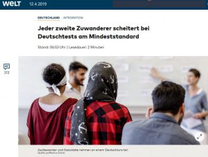 … des Deutsch-Tests für Zuwanderer bereitet Behörden und Politik Kopfzerbrechen. Wie aus einer Antwort der Bundesregierung auf eine schriftliche Frage des AfD-Abgeordneten René Springer hervorgeht, haben im vergangenen Jahr 51,5 Prozent der 172.471 Migranten, die erstmalig am Deutsch-Kurs teilnahmen, das Kursziel „Sprachniveau B1“ nicht erreicht. Im Vorjahr waren es rund 48 Prozent gewesen. Im Jahr 2016 hatten knapp 38 Prozent der Teilnehmer beim ersten Mal das Kursziel verfehlt. Darüber hatte zuerst die „Neue Osnabrücker Zeitung“ berichtet („NOZ“).