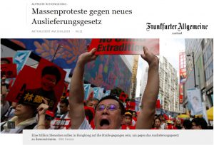 Demonstranten trugen Schilder mit „Keine Auslieferung nach China“ oder „Nach China ausgeliefert, für immer verschwunden“. Das geplante Auslieferungsgesetz würde Hongkongs Behörden erlauben, auf Ersuchen chinesischer Stellen verdächtigte Personen an die Volksrepublik auszuliefern. Kritiker argumentieren, dass Chinas Justizsystem nicht unabhängig sei, nicht internationalen Standards entspreche und politisch Andersdenkende verfolge. Auch drohten Misshandlungen und Folter. Es wurde als „Werkzeug zur Einschüchterung“ beschrieben.