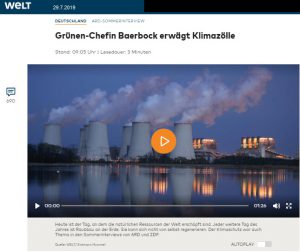 Bei den Wegen, um dies zu erreichen, gelte auch für die Grünen der Grundsatz der Technologieoffenheit, sagte Baerbock. Allerdings seien derzeit batteriebetriebene Elektrofahrzeuge offensichtlich diejenigen, bei denen das am wirtschaftlichsten und klimafreundlichsten möglich sei, anders als bei der Wasserstofftechnik. Die Herstellung der Batterien müsse allerdings umweltfreundlicher werden, mahnte die Grünen-Vorsitzende, wofür sich etwa beim Verzicht auf Kobalt bereits Lösungen abzeichneten.
