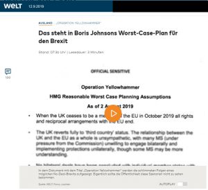 Die sogenannten „Yellowhammer“-Dokumente waren bereits vergangenen Monat an die Presse durchgesickert. Der „Sunday Times“-Journalistin Rosamund Urwin zufolge wurde jedoch der Titel geändert. Ihr waren die Dokumente zugespielt worden. Statt „Grundlegendes Szenario“ heißt es nun „Planungsannahmen für den schlimmsten Fall“. Die Änderung des Titels schien Vermutungen der Opposition zu bestätigen, dass die Regierung die möglichen Folgen eines ungeregelten EU-Austritts herunterspielt. […]