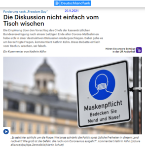 … die nächste Aufregerwelle in der Pandemie. In diesem Fall angestoßen vom Chef der kassenärztlichen Bundesvereinigung, Andreas Gassen. Einen Tag der Freiheit – Ende Oktober. Sein Vorschlag in einem Zeitungsinterview war nicht lange in der Welt, da baute sie sich auf, die Empörung. Es hagelte Kritik und Absagen – und den Vorwurf, die Kassenärzte seien ja immer für eine Schlagzeile zu haben.