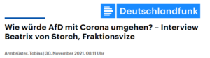 … stellvertretende Fraktionsvorsitzende der AfD im Deutschen Bundestag, hat sich vor der Bekanntgabe des Verfassungsgerichtsurteils zur Bundesnotbremse im Dlf geäußert, ein Urteil, welches diese Bundesnotbremse – wie nach dem Interview bekannt wurde – generell , und damit die Corona-Regierungspolitik gutheißt