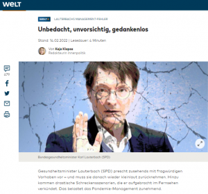 … verkündete Bundesgesundheitsminister Karl Lauterbach am Sonntagabend vor Millionenpublikum. Man habe ein Virus, das ansteckender und gefährlicher sei als die Grippe, erklärte der SPD-Politiker in der ARD-Talksendung „Anne Will“.** „Die Idee, dass das jetzt immer harmloser wird, demnächst eine Erkältungskrankheit, das ist eine ganz gefährliche Legende. Das mag in 30, 40 Jahren so sein, aber nicht für die nächsten zehn Jahre.“