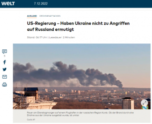 Auch ein Sprecher des US-Außenministeriums schrieb die Angriffe nicht ausdrücklich der Ukraine zu. Experten gehen aber davon aus, dass Kiew mit einfachen Drohnen aus der Sowjetzeit in den russischen Luftraum eingedrungen sein könnte – und nicht mit der milliardenschweren Militärhilfe seiner westlichen Verbündeten.