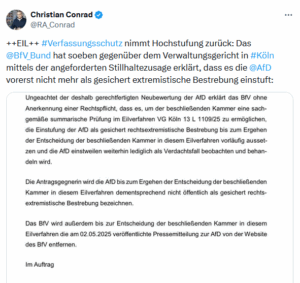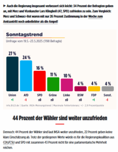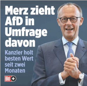 … nach muss die AfD sich in keiner Weise der CDU anpassen. Sie ist eine auf dem Boden des Grundgesetzes stehende Partei, die seit Gründung verleumdet, diffamiert und diskreditiert wird. Außerdem gibt es die Aussagen der „Zerstörung/Vernichtung der CDU“ lediglich im Kopf von Fritze Merz und gehört zur Diskreditierungspropaganda der immer schwächer werdenden Kartellparteien.