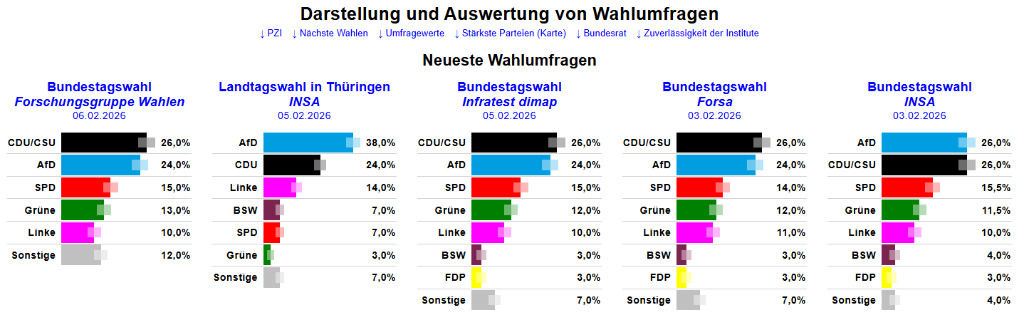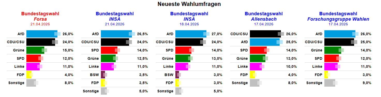 Aktuelle Wahlumfragen & ab 20.12.2024 kumuliert