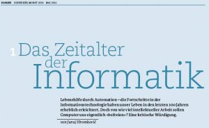 Prof. Dr. Hromkovic lehrte u. a. an der RWTH Aachen – dort habe ich ihn persönlich als fachlich höchst kompetenten und dennoch maximal sympathischen Menschen kennengelernt – bevor er dem Ruf der ETH Zürich folgte. Den Artikel öffnen Sie per Klick auf das Bild