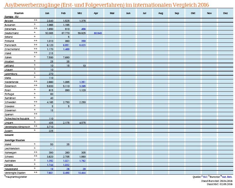 Die Asylgeschäftsstatistik April 2016 des BAMF und viele weitere aktuelle Zahlen zur Flucht nach Deutschland finden Sie hier.