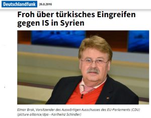 Weiß Herr Brok nicht, dass mit der Türkei ein NATO-Mitglied das Territorium eines anderen souveränen Staates betritt. Wurde die Türkei von Baschar-al-Assad gerufen? Oder die USA?