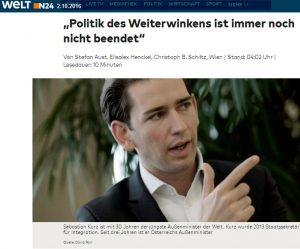 Das Zitat stammt aus der heutigen WELT am SONNTAG (2.10.2016) und ist Teil eines ausführlichen Interviews mit Sebastian Kurz.