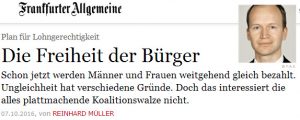 Wobei mögliche Unterschiede im Gehaltsgefüge m. E. ohnehin nicht am Geschlecht festgemacht werden können. Würden Frauen die gleiche Leistung wie Männer erbringen und nur wegen „Frau“ minder bezahlt, ja warum würden dann nicht nur Frauen eingestellt. Das wäre dann doch erheblich billiger, als die angeblich viel besser bezahlten männlichen Mitarbeiter.