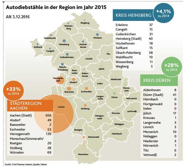 Die Verantwortlichen in Holland sind wohl früher alles Schwarzfahrer gewesen, die meinten, der Bus fahre ja ohnehin. ______________ An dieser Stelle möchte nicht verhehlen, dass mir persönlich innerhalb von 2 Jahren 2 BMW im Wert von jeweils über 20.000 € gestohlen wurden. Direkt von der Haustür weg. Mit riesigem Hantier mit der Versicherung, die selbstverständlich den Vertrag gekündigt hat. Einen neuen Vertrag bekam ich nur über meine Drähte als Versicherungsmakler, allerdings nur mit hohen Auflagen. Ich bin also etwas befangen. Das ändert jedoch nichts an der Sachlichkeit meines Artikels. _______________ Ist die Einstellung von Polizei und Staatsanwaltschaft in Holland schon extrem grenzwertig, erstaunt ein weiterer Sachverhalt zusätzlich: „Noch schwieriger ist es, wenn sie in Holland Autos untersuchen wollen, dann müssen sie ein Rechtshilfeersuchen an die niederländische Polizei richten. Darin bitten sie dann darum, dass die niederländische Polizei dies oder jenes tun soll, und oft ist es so, dass einfach nichts passiert. Die Aachener Polizei hat viele belastbare Hinweise auf im holländischen Grenzgebiet ansässige Banden, die vom Handel mit gestohlenen Autos leben, alle mit legalem Anstrich. Die Aachener Polizisten stellen regelmäßig Rechtshilfeersuchen für Observationen, Hausdurchsuchungen und Telefonüberwachungen, doch die Holländer unternehmen: „Zu oft nichts“, sagt Offermanns. ´Das ist es, was frustrierend ist.`“ Auto- und Ersatzteilhändler im deutsch- holländischem Grenzgebiet sind also Oder wie ist das mit dem legalen Anstrich zu verstehen? Genau so: “ … , dass im deutsch-niederländischen Grenzgebiet unzählige Gebrauchtwagenhändler, Kfz-Werkstätten und Lackierereien zum Teil seit mehreren Generationen unter anderem vom Handel mit gestohlenen Autos leben. Die meisten Unternehmen befinden sich im niederländischen Grenzgebiet, einige aber auch auf deutscher Seite.“ Da warte ich gerne, da zeige ich meinen Pass wie früher und gut is´. Beim letzten Mal, als streng kontrolliert wurde – nach dem Anschlag in Paris letztes Jahr um diese Zeit – ging allein die Zahl der Einbrüche in der Region Aachen um 60% zurück. Auch die Autodiebstähle gingen wahrscheinlich Ende 2015 zurück. Sonst wären es noch mehr als 1009 Fahrzeuge geworden. _______________________________________ *Alle Zitate und Bilder sind den Berichten (Seite 1 und Seite 3) von Marlon Gego entnommen, die am 3.12.2016 in den Aachener Nachrichten erschienen sind. _____________________________________________Ist schon eine bemerkenswerte Ansicht.