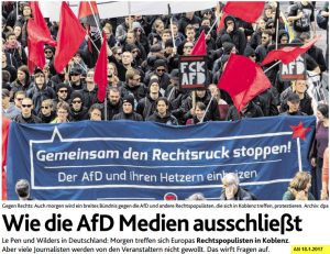Es geht um einen Kongress, den die ENF/AfD morgen in Koblenz veranstaltet. Nur ausgewählte Medien (u.a. DIE WELT) werden zugelassen.