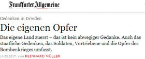 Was das Gedenken an Dresden und die anderen Opfer der nationalsozialistischen Herrschaft anbelangt, bin ich der Meinung, dass es einen angemessenen Platz in der Gesellschaft haben sollte. Allerdings so zu tun, dass Alles, was nicht links der Mitte ist, den Führer wiederauferstehen lasse, halte ich für absurd. Die Gefahr einer nationalsozialistischen Diktatur in Deutschland geht gegen Null.