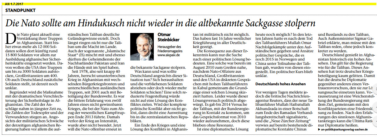 Der Westen, Deutschland, unsere freiheitliche Gesellschaft muss nicht am Hindukusch verteidigt werden, sondern an der bundesdeutschen bzw. Europas Grenze.