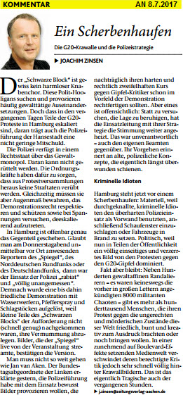 Herr Zinsen schreibt am 8.7.2017 in seinem Kommentar zu den Ereignissen in Hamburg: