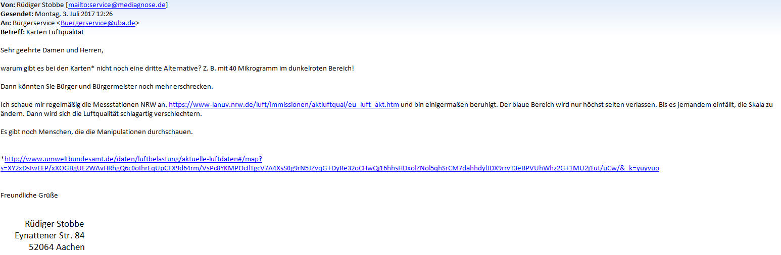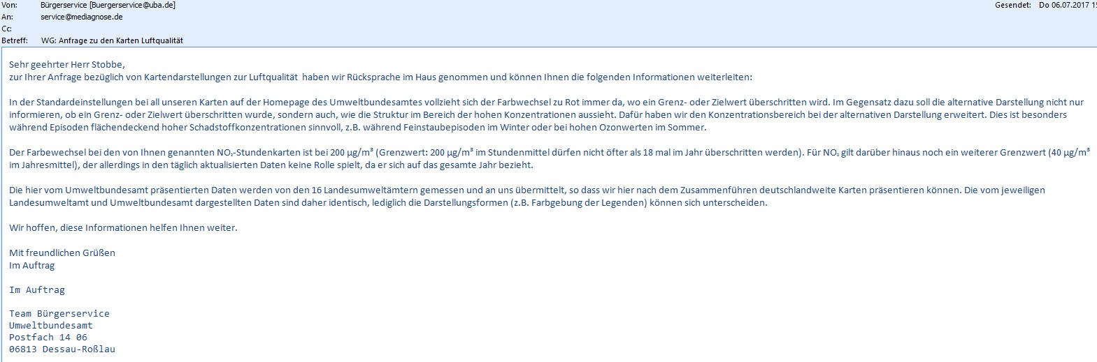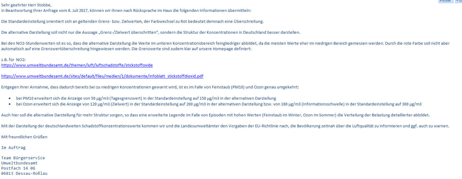 Ich habe mich mit dem UBA in Verbindung gesetzt und folgende E-Mail an den Bürgerservice geschickt: