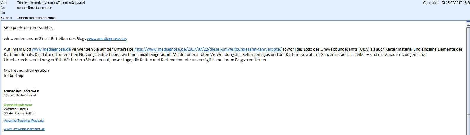 Das Umweltbundesamt reklamiert Urheberrechtean den Grafiken, die im Artikel unten integriert waren.
