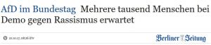 Felser kritisierte, das Protestmotto „Gegen Hass und Rassismus im Bundestag” bedeute eine Diskreditierung aller 92 AfD-Bundestagsabgeordneten. Die Partei sei demokratisch legitimiert und von sechs Millionen Menschen gewählt worden.“