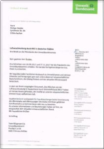 Das Umweltbundesamt hat sich dazu herabgelassen auf meine Schreiben an die Präsidentin Frau Krautzberger (hier und hier klicken) herabgelassen, nach knapp 4 Monaten zu antworten.