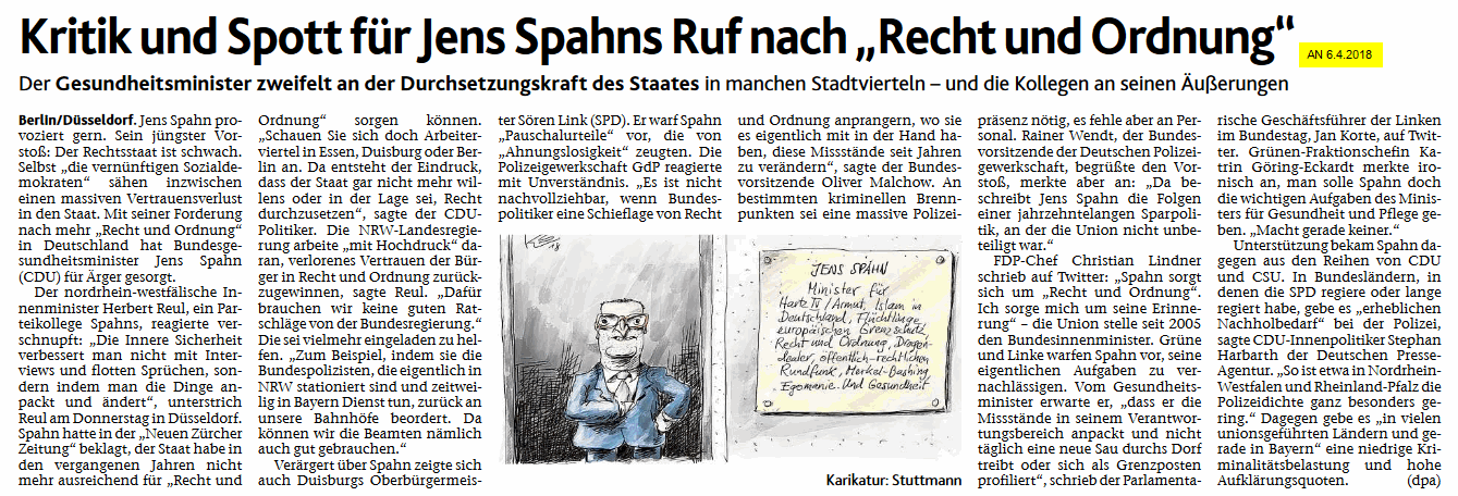 Dass Jens Spahn mit seinen aktuellen kritischen Äußerungen ganz bestimmt im richtigen – ´grünen` passt hier nicht – Bereich liegt, liegen muss, beweist folgender Bericht der AN: