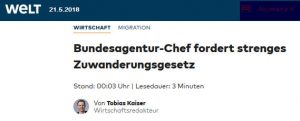 Zudem fordert der SPD-Politiker, dass nur diejenigen aus Drittstaaten eine Arbeitserlaubnis bekommen, die bereits eine Jobzusage haben. „Es sollten nur diejenigen nach Deutschland kommen dürfen, die bereits die Zusage für einen Arbeitsplatz hierzulande haben“, sagte Scheele WELT AM SONNTAG.