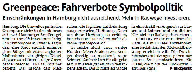 Denn die Sperrung lediglich der Straßen, an denen der erhöhte NO2-Jahresdurchschnittsgrenzwert konkret ermittelt wurde, ist nicht das, was sie sich vorgestellt haben.