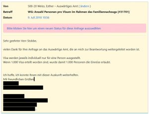Die Antwort des Auswärtigen Amtes meiner Anfrage vom 9.7.2018 kam prompt!
