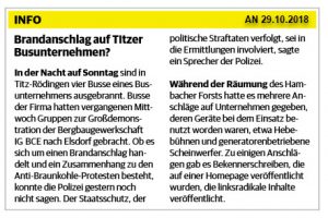 Der komplette Bericht der AN, der – es wird zwar immer noch von ´Protest` und ´Aktivisten`, statt von Kriminellen und kriminellen Handlungen o. ä. gesprochen – verhältnismäßig ausgewogen ist. Dank an den Redakteur Christoph Pauli: