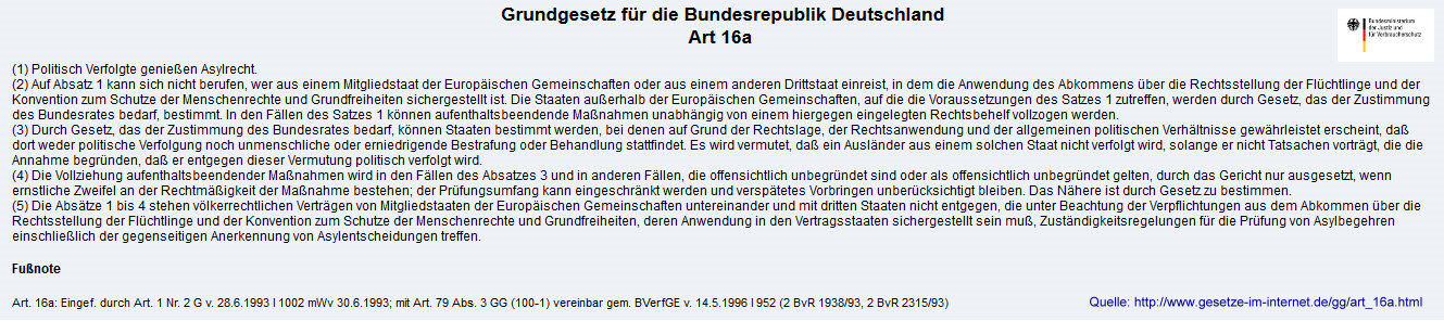 Da nimmt es unsere Politik mit dem 16a GG nicht mehr so genau.