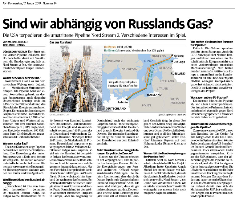 Egal ob es 40 oder 70 % sind, die den deutschen Gasbedarf aus Russland aus machen. Es wird in jedem Fall mehr werden. Sonst hätte man die milliardenteure Pipeline ja nicht bauen müssen.