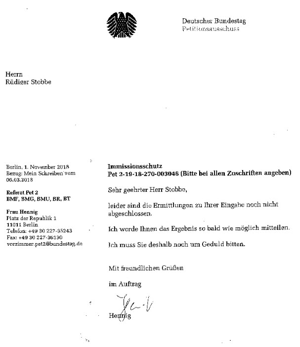 - Der Jahresdurchschnittsgrenzwert 40 µg NO2 / m3 Luft, der praktisch ausschließlich in der Dieseldebatte herangezogen wird, lässt vermuten, dass die Apologeten der Reinhaltung der Luft (Bundesumweltamt, Bundesumweltministerium, Deutsche Umwelthilfe usw.) wissen, was ein Durchschnitt ist. Es gibt in Deutschland 525 Messtellen, die über das Land verteilt, in den Städten zu finden sind. In Aachen gibt 4 Messtellen, in Hamburg 15, in München 3, usw.. Über Standort, Genauigkeit u. v. m dieser Messtellen wird neuerdings heftig gestritten. Ähnlich wie bei den Grenzwerten der wichtige, wirklichkeitsnahe Stundenmessgrenzwert 200 µg NO2 „vergessen“ wird, gibt es bei der Durchschnittsberechnung einen sachlichen ´Fehler`, welcher massive Auswirkungen hat. Das Umweltbundesamt gibt jedes Jahr eine Tabelle heraus, in der die Städte aufgelistet sind, welche den Jahresdurchschnittsgrenzwert überschreiten. Wenn Sie die Excel-Tabelle zum Jahresdurchschnittswert jeder einzelnen Messstelle aufrufen, und z. B. in Spalte die 300 = Hannover gehen, werden Sie feststellen, dass die Tabelle des Umweltbundesamtes oben lediglich den Wert der Messstelle auswirft, die den schlechtesten Wert aufweist. Das sind für Hannover 48 µg NO2. Genauso – kein Durchschnitt, sondern schlechtester Einzelwert – wird mit allen anderen Städten verfahren. Für keine einzige Stadt wird ein Durchschnitt aus den Ergebnissen aller Messtellen der Stadt ermittelt. Der schlechteste Einzelwert der Stadt wird einfach auf die gesamte Stadt übertragen. Zwar würde Hannover mit 40,33 µg den Grenzwert noch reißen, doch Aachen – Spalte 327 – z. B. würde im Jahresdurchschnitt statt 46 µg schlappe 35,75 µg NO2 ausweisen. Folge: Kein Fahrverbot! Soll die Bevölkerung, sollen die Gerichte mit voller Absicht für dumm verkauft werden? Habe ich doch bereits vor gut einem Jahr eine Petition an den Petitionsausschuss des Bundestags geschickt. Im November 2018 kam dieser Zwischenbescheid. Das war nach knapp 11 Monaten. Vor knapp 3 Monaten. Einen abschließenden Bescheid habe ich bis heute nicht bekommen. Ein Schelm, wer Absicht dabei denkt. Zwischenzeitlich konnten mit den unredlichen Nichtdurchschnittswerten etliche Fahrverbote erstritten werden.