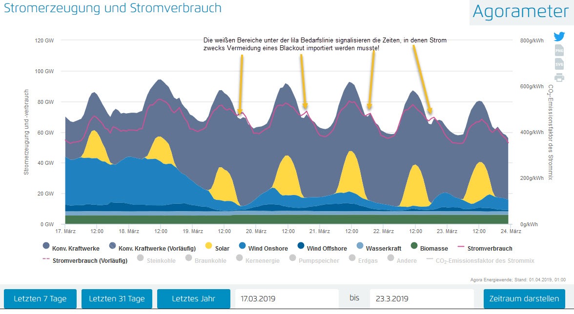 Stromimporte sind bereits heute stundenweise notwendig. Sonst käme es zum Blackout.