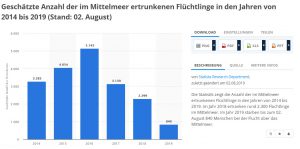 Hochgerechnet werden 2019 um die 1.300 Menschen im Mittelmeer ertrinken. Das sind 900 Menschen weniger als 2018.