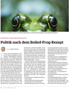 Josef Kraus hat in Tichy Print 11/2019 – ´Das Klima-Dogma` – das Bild des Boiled Frog eingeführt.
