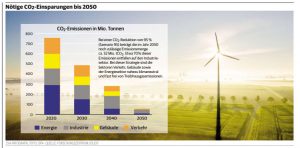 Es ist m.E. nur billig und das Gegenteil von Wissenschaft, einfach da, wo es nicht reicht, „Einsparungen“ (Grafik unten) anzusetzen. Von der Möglichkeit, das CO2-Ziel unter diesen Bedingungen zu erreichen, zu sprechen, ist in höchstem Maß unseriös. Eingedenk der Tatsache, dass der Energiebedarf in Form von Strom bezogen auf den Primärenergiebedarf heute für 2050 viel zu gering angesetzt wurde, kann ich nur von einer Gefälligkeitsstudie sprechen. Die viel Geld gekostet hat, die viel Geld bringen wird. Denn solche Studien brauchen unserer Welt- und Klimaretter in Politik, Medien, Zivilgesellschaft. Und natürlich die Wirtschaftsteile, die davon profitieren. Dafür wird gerne und viel gezahlt.
