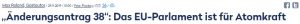 Das EU-Parlament votiert für Stromerzeugung mittels Kernenergie und ein Schülerblog berichtet. Sonst niemand. Vom SPIEGEL unten mal abgesehen.