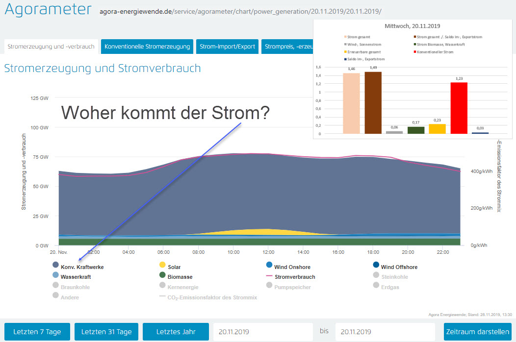 Konventionelle Stromerzeugung 17.11 bis 23.11.2019