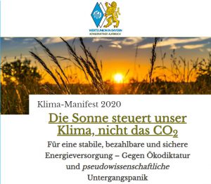 … in Bayern – Konservativer Aufbruch sieht es als erwiesen an, dass die Sonne das Klima steuert und nicht das Kohlendioxid (C02). Die neuen Klima-Gesetze seien daher unbedeutend für das Klima, aber „sie bedrohen die Grundlagen für Freiheit, Wohlstand und Marktwirtschaft“, so der Landesvorstand.